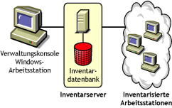 Inventardatenbank: Ein Repository mit Inventarinformationen von allen inventarisierten Arbeitsstationen. Die Inventardatenbank kann mit Sybase*, Oracle* oder MS SQL angelegt werden.