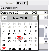 Berichte werden durch Angabe des Datumsbereichs und anderer Parameter, beispielsweise Benutzer oder Standort, konfiguriert. Wenn Sie die Daten festlegen möchten, erweitern Sie die Ansicht so, dass der Kalender angezeigt wird, und wählen Sie dann Monat und Tag aus. Klicken Sie in jedem Fall auf den Tag, um den Datumsparameter zu ändern.