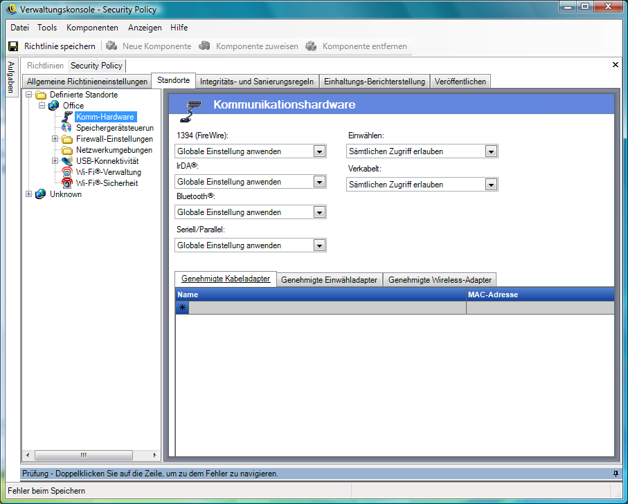 Mithilfe der Einstellungen für die Kommunikationshardware wird nach Standort gesteuert, welche Hardwaretypen in dieser Netzwerkumgebung eine Verbindung herstellen dürfen.