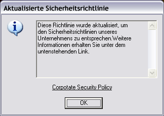 Meldung bei Richtlinienaktualisierung verwenden: Sie können festlegen, dass bei jeder Aktualisierung der Richtlinie eine benutzerdefinierte Meldung angezeigt wird. Klicken Sie in das Kontrollkästchen und geben Sie dann in den dafür vorgesehenen Feldern die Informationen zur Meldung an.