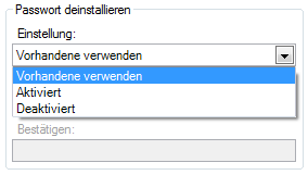 Aktiviert: Aktiviert bzw. ändert ein Deinstallationspasswort. Geben Sie das neue Passwort an und bestätigen Sie es anschließend.
