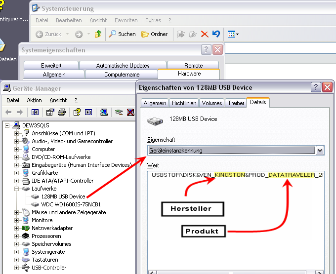 Es ist interessant, dass das Feld der USB-Seriennummern (SN) nach Spez. nur eindeutig ist, wenn es bei der Angabe der folgenden Felder zusammen mit der SN berücksichtigt wird: USB-Version, Händler-ID, Produktions-ID und BCD-Gerät.
