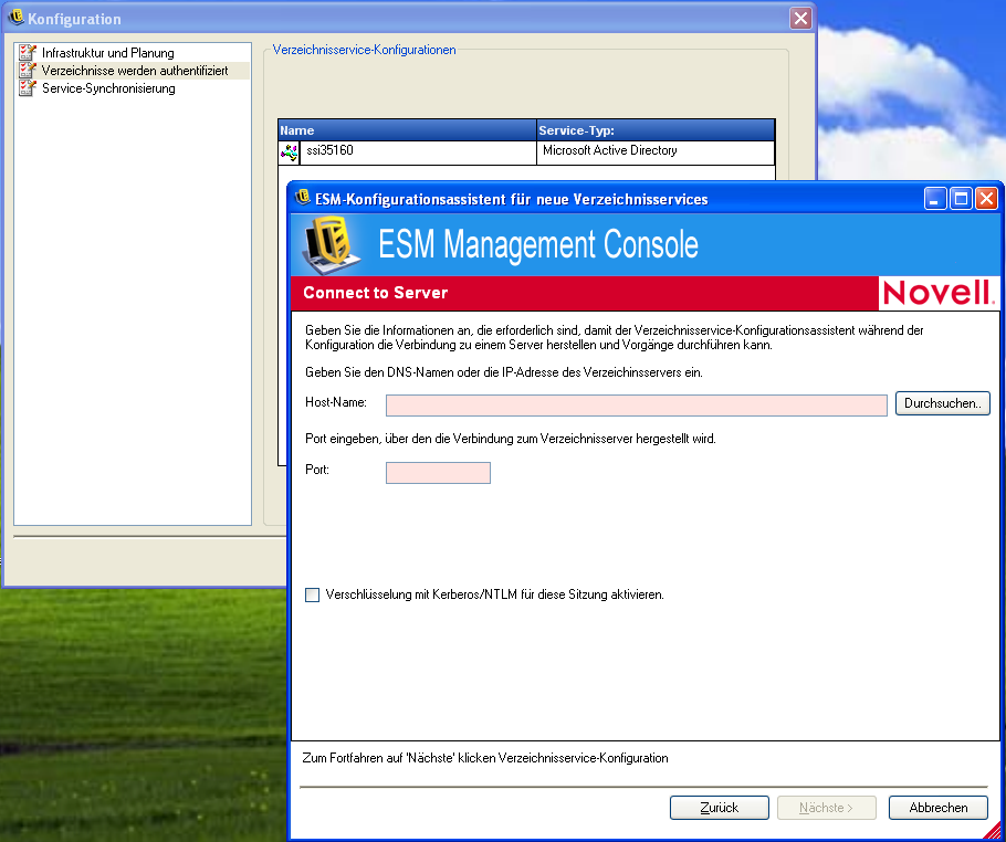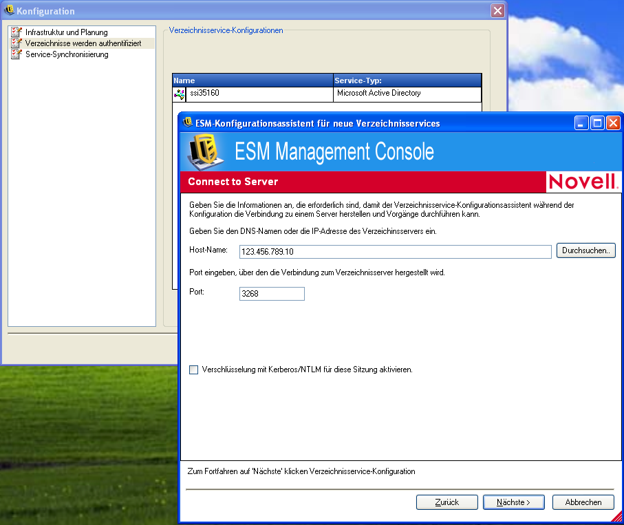 Geben Sie im Feld die IP-Adresse des eDirectory-Servers und im Feld den Baumnamen ein.