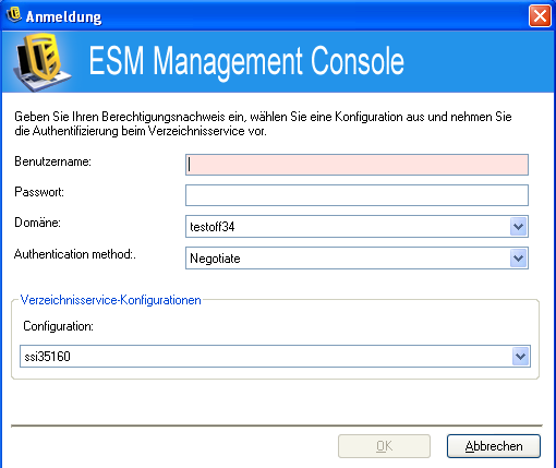 Um das Anmeldefenster der Verwaltungskonsole zu starten klicken Sie auf > > > > .