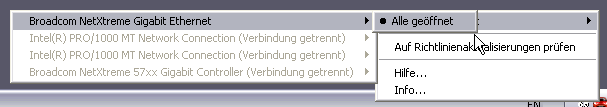 Klicken Sie in der Taskleiste mit der rechten Maustaste auf das Symbol für den , um das Menü anzuzeigen.