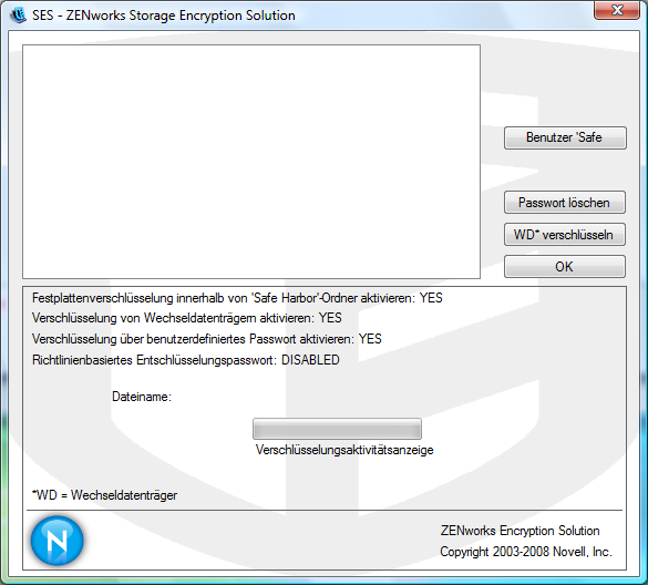 Benutzer von ZENworks Endpoint Security, die nicht durch Ihre Richtlinie verwaltet werden, können auf diese Dateien zugreifen, indem sie ihre Passwörter eingeben. Benutzer, die nicht durch ZENworks Endpoint Security·verwaltet werden, benötigen das ZENworks File Decryption-Dienstprogramm und das Passwort, um auf die Dateien zuzugreifen.