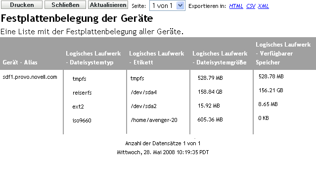 Die folgende Grafik ist ein Beispiel für einen erstellten ZENworks-Bericht.