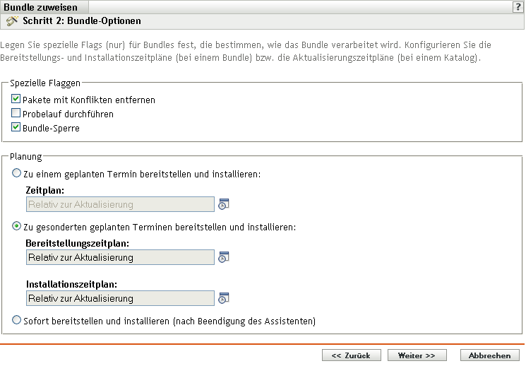 Festlegen des Installations- oder Bereitstellungszeitplans für die Bundles