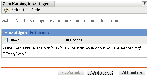 Klicken Sie auf , um die ausgewählten Kataloge in der Liste auf der Seite Ziele