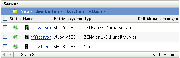 Am Link in der Spalte "Dell-Aktualisierungen" erkennen Sie, ob das ZENworks-Paket-Repository ein Dell-Aktualisierungspaket-Bundle für die aufgelisteten Dell-PowerEdge-Server enthält. In den folgenden Fällen liegt eine Aktualisierung vor: