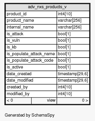 | View SIEM.public.adv_nxs_products_v All the products that are supported by Novell for Advisor.