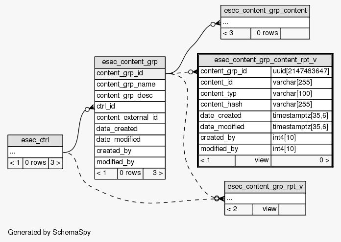 | View SIEM.public.esec_content_grp_content_rpt_v Part of the solution pack content tracking system. This table associates content groups to content.