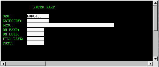 Click the Enter button in the 3270 pane. The 3270 ENTER PART screen is populated with the SKU's associated data.