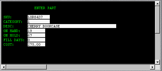 Click the Step Into button again. The ENTER PART screen becomes populated with the data associated with the SKU number.