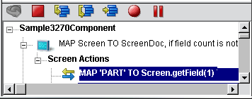 Click the Step Into button. The first Map Screen action becomes highlighted.