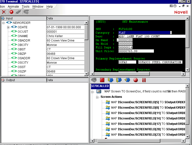 This example then displays an "ENTER ORDER" 3270 screen in the Native Environment pane.
