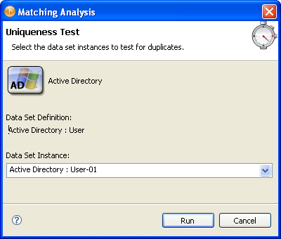 In the Uniqueness Test dialog box, select a specific data set instance against which you want to run the uniqueness search, then click .