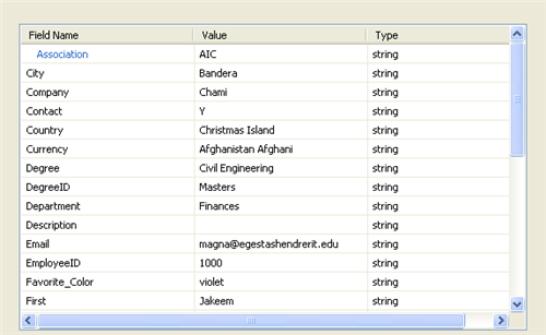 Value: Displays a sample value for the associated flat file data column. Values are for information only and cannot be modified.