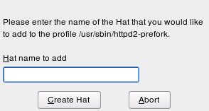 In the pop-up window, specify the name of the subprofile (hat) to add to your current profile and click . For more information, refer to Section 5.0, Profiling Your Web Applications Using ChangeHat.