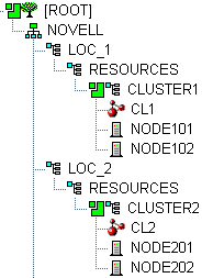 Cluster nodes and Cluster objects can exist anywhere in the eDirectory tree. The virtual server object, cluster pool object, and cluster volume object are automatically created in the eDirectory context of the server where the cluster resource is created and cluster-enabled. You should create cluster resources on the master node of the cluster.