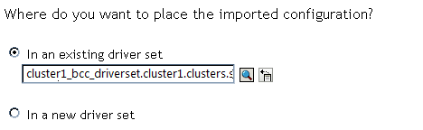 On the Import Configuration page, specify where you want to place the new driver. Select , verify that the driver set is the one you preselected, then click .