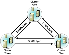 Figure 2-3 Three-Cluster Identity Manager Synchronization Loop