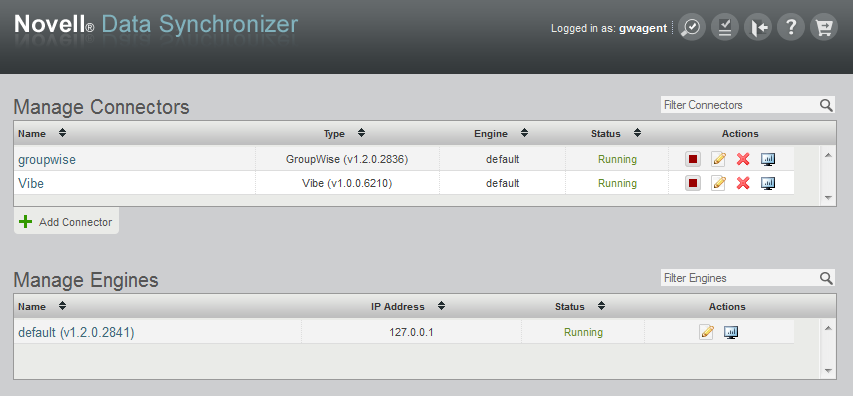 Continue with Monitoring the Vibe Connector and the GroupWise Connector.
