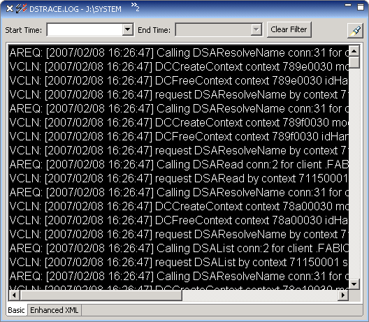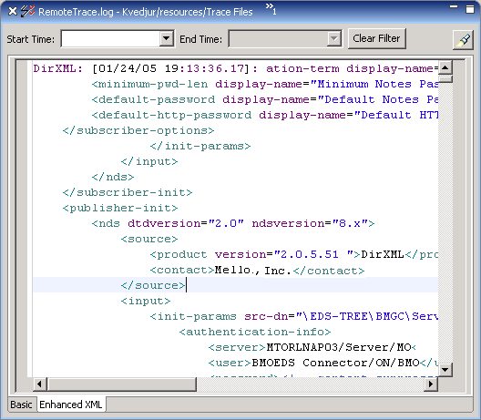 The DSTrace view is an editor that enables you to view DSTrace log files. These log files contain information (including XML data) about the Metadirectory.