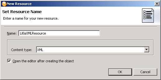 Specify the desired XML or text, then press Ctrl+S to save the resource object.
