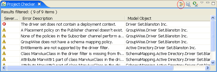 The Project Checker allows you to view the messages in a hierarchical format or in a flat format It allows you to limit the object-specific messages that are displayed. Click the icon for more choices.