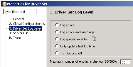 The driver set log contains messages from the engine when it tries to start or stop drivers. To view the log, use iManager. Select the icon above the Identity Vault in the .