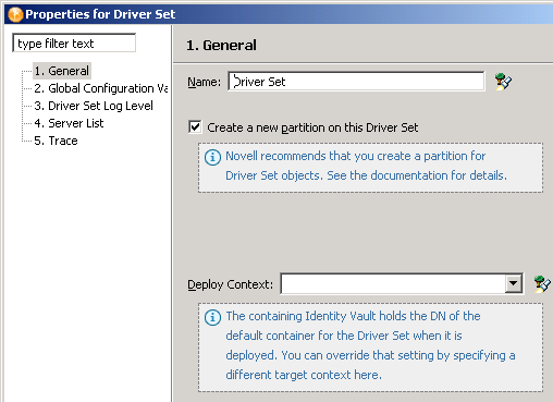 The Identity Vault assigns the default DN container value to all driver sets. If you specify a DN container here on the Driver Set object, that setting takes precedence over the Identity Vault setting. You can manually enter this value or browse for it. |