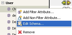 To import, deploy, and edit the schema in the Dataflow editor, right-click an Identity Vault. All schema changes made outside of this editor are synchronized. For more information, see Section 12.0, Managing the Schema.