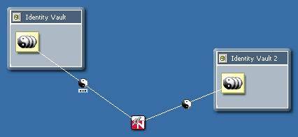 When you connect a line between two eDirectory applications, the line automatically turns into an eDir-to-eDir connection. See the illustration in Section 13.2.6, Viewing an eDir-to-eDir Driver.