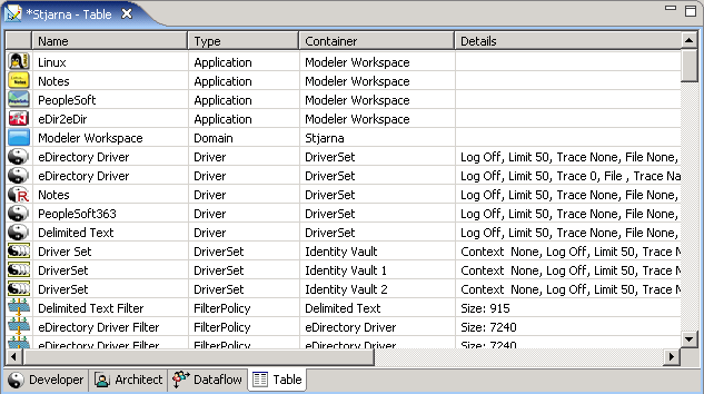 When you select an item in the table, Designer synchronizes the selection with the Outline view, so that you can view the selection’s container.