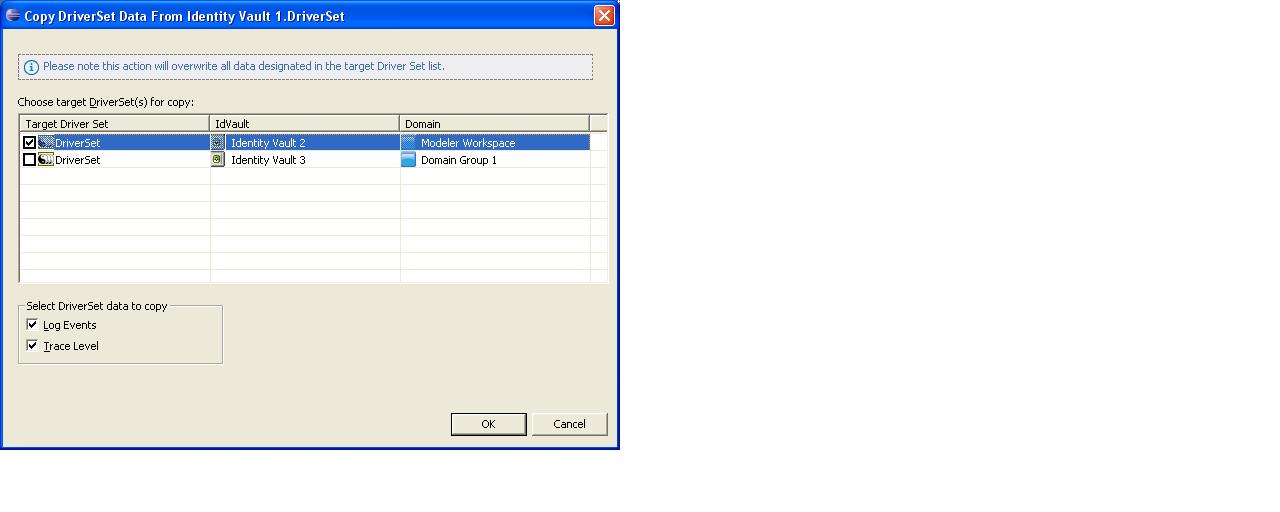 We have added the ability to copy Log Events and Trace Level settings for a driverset to any driverset in the project.