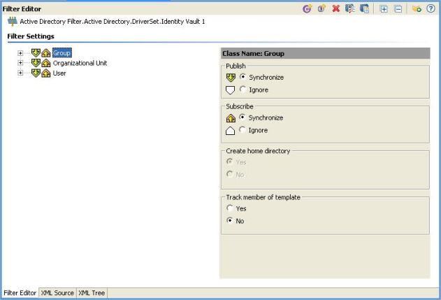 In the filter editor, the "Create home directory" radio buttons are disabled when a class is selected that does not inherit from ndsLoginProperties.