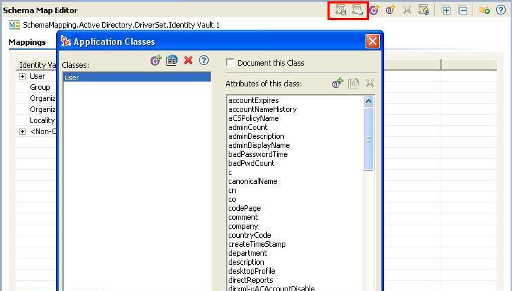 Toolbar buttons for bringing up the schema management tools for both the Identity Vault and Application schema have been added to the Schema Map editor.