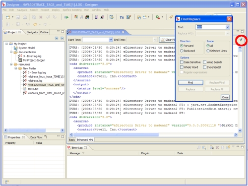 This new editor allows you to view DS Trace files. You can also enter a range of filtered
