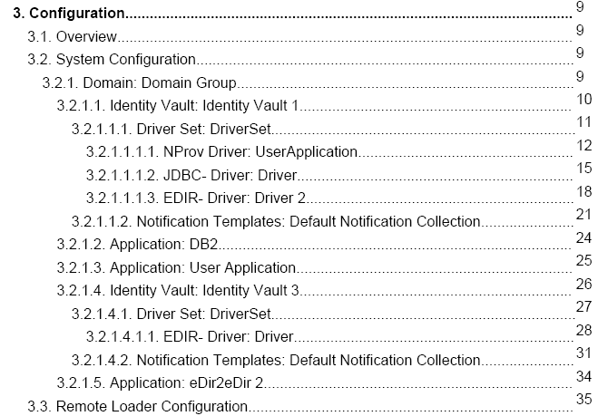 For example, the table of contents from the selection above would look like the following; (Note that Identity Vault 2, and other objects outside the domain are not included)