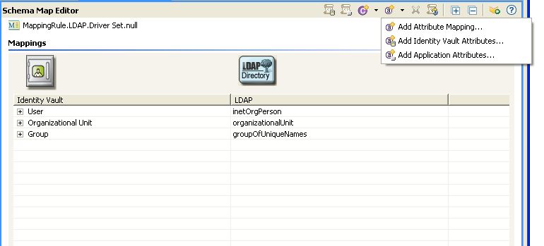 The "Add Class" and "Add Attribute" toolbar buttons now include a dropdown that allows you to add multiple identity vault or multiple application classes or attributes.