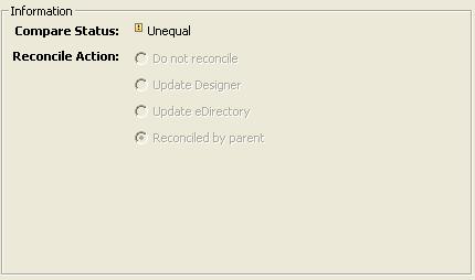 The compare status specifies whether or not the Designer and eDirectory object or