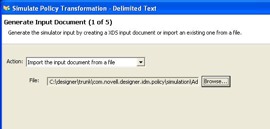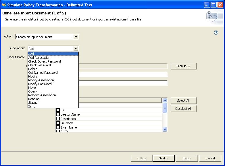 An additional page added to the policy simulator allows a user to select how to create the simulator input as well as the type of operation to simulate. It also allows the user to build the simulator XDS Input document from a variety of template objects.