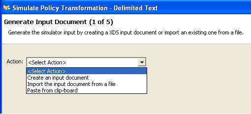 The option "Paste document from clipboard" will automatically move to the simulator input page and paste the contents of the clipboard into the input editor. The option "Import the input document from a file" was available in previous releases. It will display a text field and button which will allow the user to browse for a file on the file system.