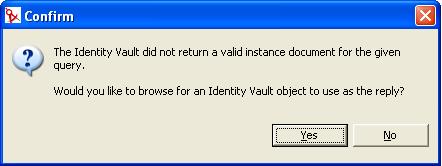 If an error occurs while submitting the query or if the query returned an empty reply a dialog will be displayed which will allow the user to browse for an object to use as a template for the response.