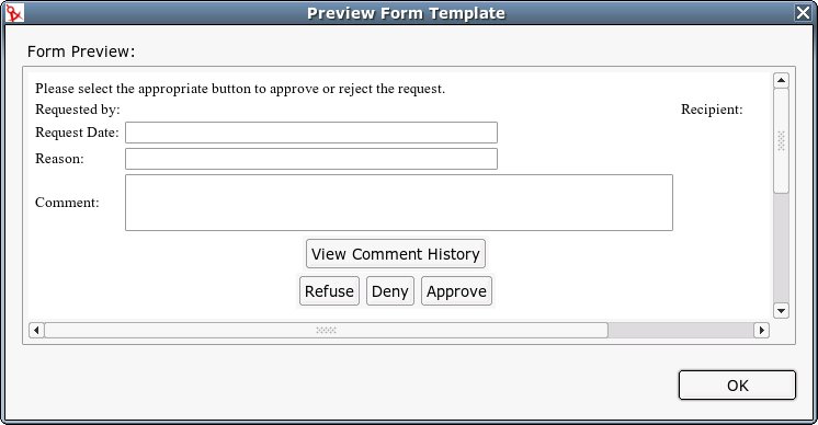 You can also create and re-use form templates to speed up work flow design and creation. Use any Data Abstraction Layer data and user application visual controls to build your forms including Date Pickers, DN Pickers, Check boxes, Text Areas, etc.