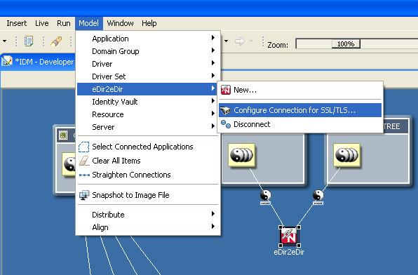 Then select the menu option Model->eDir2eDir->Configure Connection for SSL/TLS...