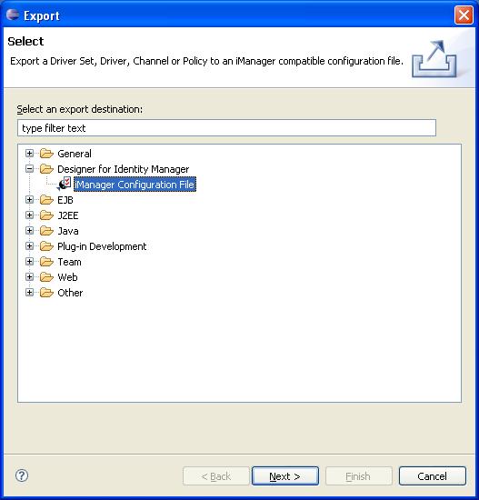 File->Export menu option. Expand the Designer for Identity Manager folder and select the