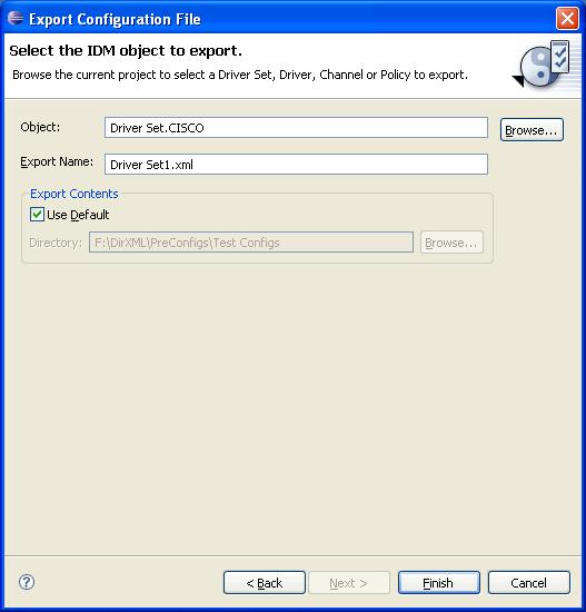 Select the "Next" button and browse to the IDM object you wish to export. Finally specify