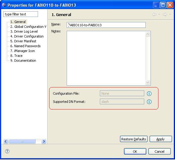 For user convenience, we have added two additional fields on the General Driver properties page: Configuration File and Supported DN Format.
